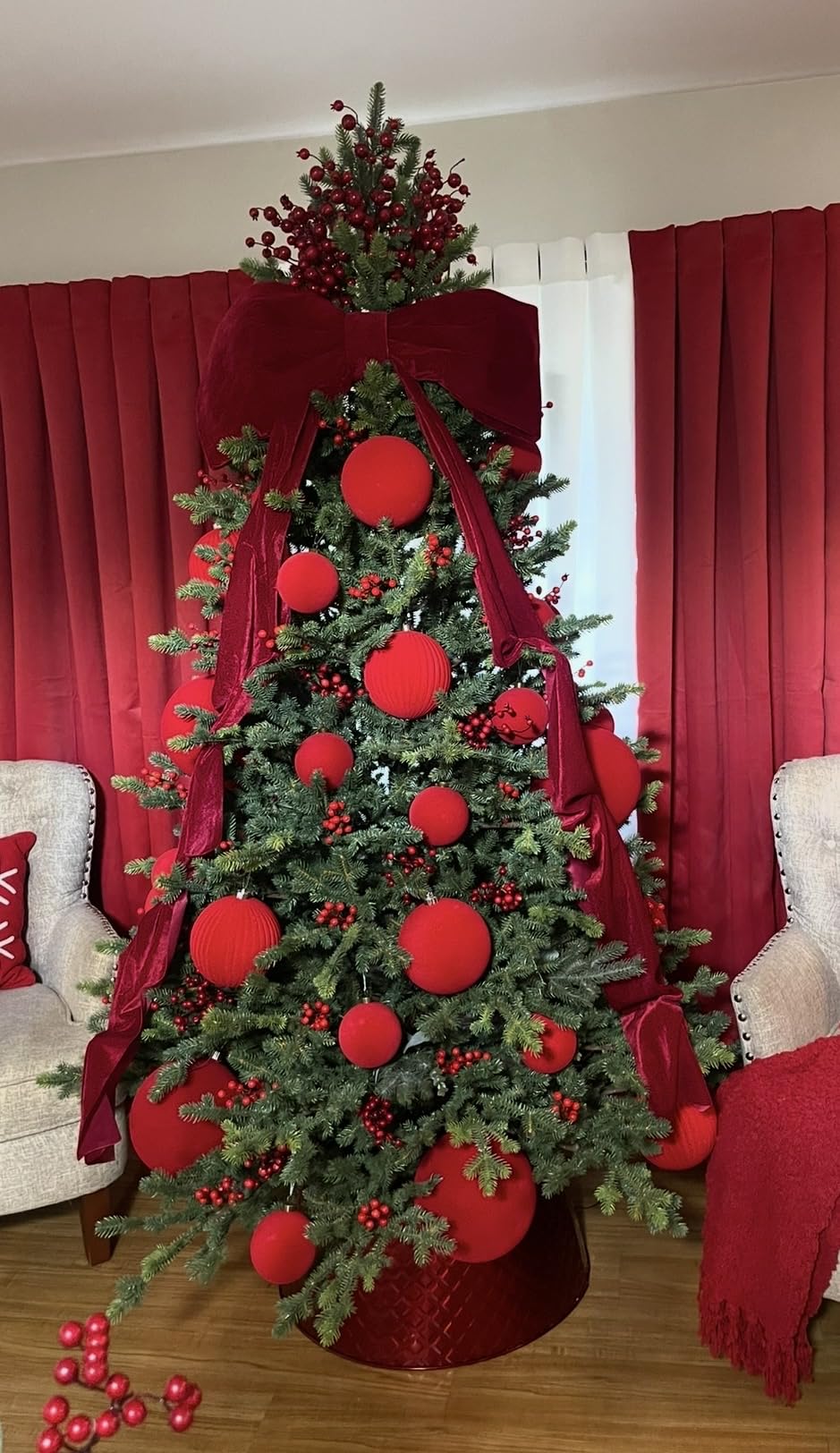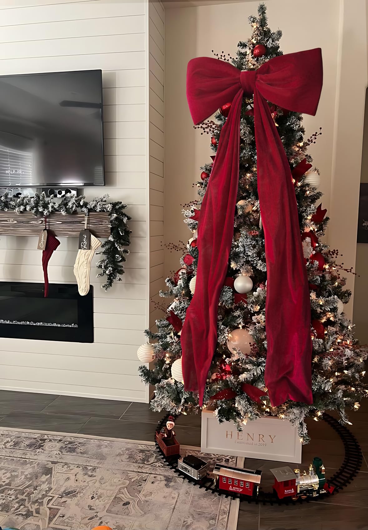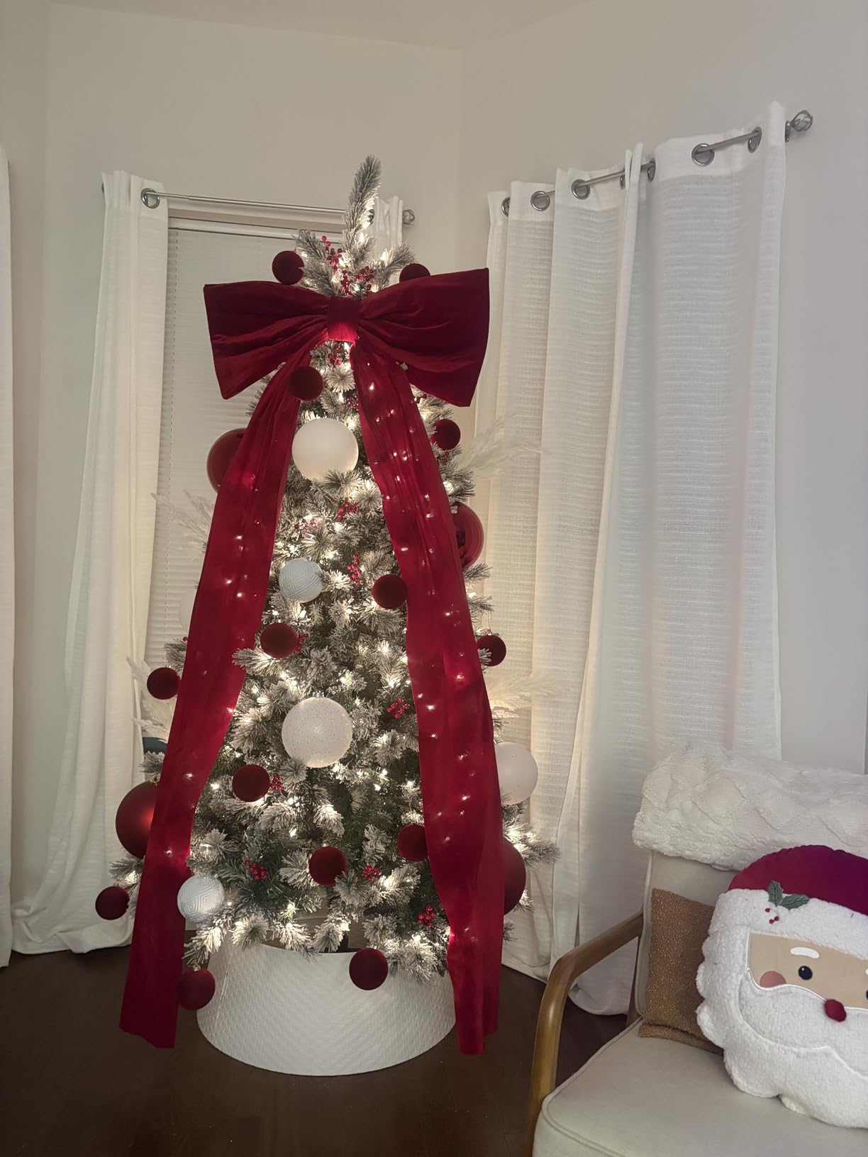 Transform your Christmas tree into a show-stopping centerpiece. This giant velvet bow instantly adds a luxurious, festive touch that ties your whole holiday décor together — no complicated setup needed.
